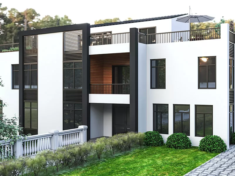 ● శక్తి సామర్థ్యం: విల్లా హౌస్ అనేది ఇన్సులేటెడ్ గోడలు మరియు పైకప్పులు, శక్తి-సమర్థవంతమైన కిటికీలు మరియు సోలార్ ప్యానెల్ ఇంటిగ్రేషన్ ఎంపికలు, శక్తి వినియోగం మరియు యుటిలిటీ బిల్లులను తగ్గించడం వంటి శక్తి-పొదుపు లక్షణాలతో రూపొందించబడింది.