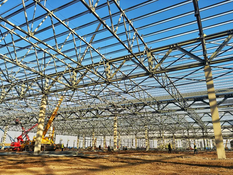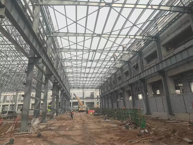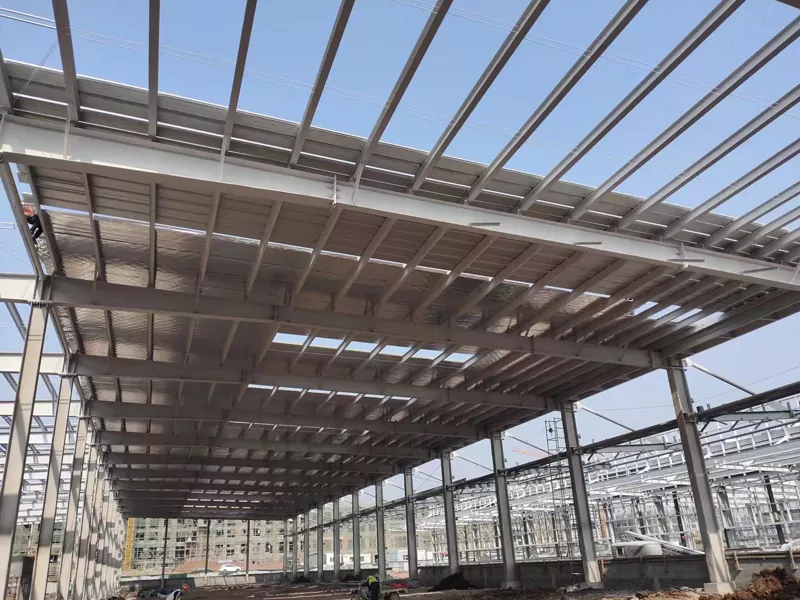 ఈహే యొక్క స్టీల్ ఫ్రేమ్ గిడ్డంగి ఆధునిక మరియు సమర్థవంతమైన నిల్వ పరిష్కారం, ఉక్కు ప్రధాన నిర్మాణ పదార్థంగా ఉంటుంది. ఈ రకమైన గిడ్డంగిలో అధిక బలం, మన్నిక మరియు ఖర్చు-ప్రభావాన్ని కలిగి ఉంది, ఇది నిల్వ సౌకర్యాలను నిర్మించడానికి ఇది ఒక ప్రసిద్ధ ఎంపికగా మారుతుంది. గిడ్డంగి యొక్క ఫ్రేమ్ స్టీల్ స్తంభాలు మరియు తెప్పలతో కూడి ఉంటుంది, ఇది చాలా బలమైన మరియు స్థిరమైన ఫ్రేమ్‌వర్క్‌ను ఏర్పరుస్తుంది. ఈ డిజైన్ గిడ్డంగిని సురక్షితంగా భారీ భారాన్ని కలిగి ఉండటానికి వీలు కల్పించడమే కాక, తీవ్రమైన వాతావరణ పరిస్థితులను తట్టుకుంటుంది. ఉక్కు భాగాలు కర్మాగారంలో ముందుగా తయారు చేసి, ఆపై ఆన్-సైట్‌లో సమావేశమవుతాయి, ఇవి నిర్మాణ సమయాన్ని తగ్గించగలవు మరియు నిర్మాణాత్మక ఖచ్చితత్వాన్ని నిర్ధారించగలవు.