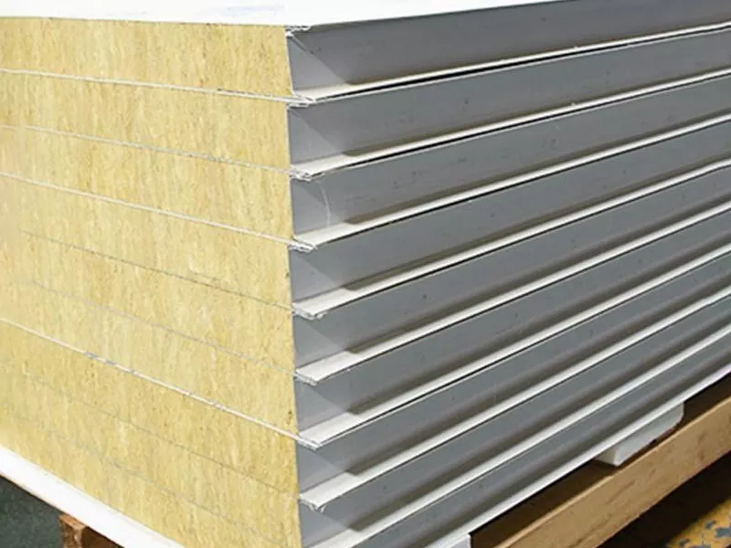 శాండ్‌విచ్ ప్యానెల్ యొక్క ప్రధాన భాగం రాక్‌వూల్‌తో కూడి ఉంటుంది, ఇది అద్భుతమైన థర్మల్ మరియు ఎకౌస్టిక్ ఇన్సులేషన్ లక్షణాలకు ప్రసిద్ధి చెందిన మినరల్ ఫైబర్ ఇన్సులేషన్ మెటీరియల్. ఈ కోర్ చుట్టూ రెండు పొరల మెటల్ షీట్లు ఉంటాయి, సాధారణంగా ఉక్కు లేదా అల్యూమినియం, ఇవి నిర్మాణ దృఢత్వాన్ని అందిస్తాయి మరియు బాహ్య మూలకాల నుండి ఇన్సులేషన్‌ను రక్షిస్తాయి.