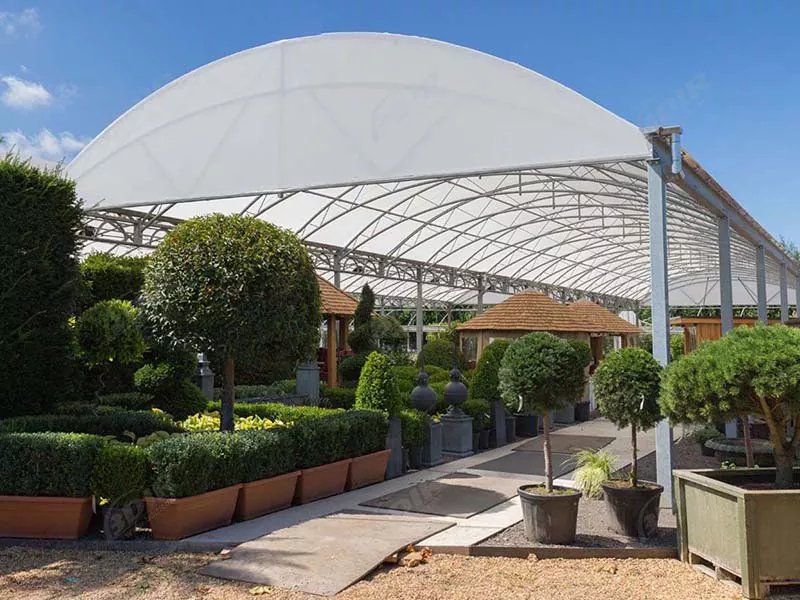 స్టీల్ ఫ్రేమ్వర్క్: హాల్కి బలమైన ఉక్కు ఫ్రేమ్వర్క్ మద్దతు ఉంది, ఇందులో కిరణాలు, నిలువు వరుసలు మరియు ట్రస్సులు ఉంటాయి. స్టీల్ యొక్క అధిక బలం-బరువు నిష్పత్తి అదనపు మద్దతు స్తంభాల అవసరం లేకుండా పెద్ద పరిధులను సృష్టించడానికి అనుమతిస్తుంది, మొక్కల ప్రదర్శనల కోసం అందుబాటులో ఉన్న స్థలాన్ని పెంచుతుంది.